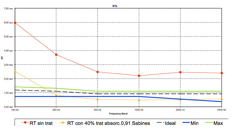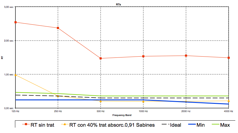 Tiempo de reverberación con el acondicionamiento acústico concluido.